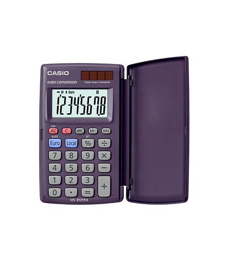 Der CASIO HS-8VERA Taschenrechner dunkelblau liefert schnelle ErgebnisseMit dem CASIO HS-8VERA Taschenrechner dunkelblau lösen Sie komplizierte und umfangreiche Rechnungen im Handumdrehen. Das praktische Gerät zeichnet sich durch einfachste Bedienung aus.Voller EnergieDank Solar- und Stützbatteriebetrieb ist das Gerät immer einsatzbereit – ganz gleich, welche Lichtverhältnisse gerade vorliegen. Der Artikel verfügt außerdem über eine automatische Stromabschaltung bei Nichtbenutzung.Abspeichern möglichDas Gerät besitzt ein 8-stelliges LCD-Display für besonders gut lesbare Recheneingaben und -ergebnisse. Das Gerät bietet Ihnen mit seinem 3-Tasten-Speicher eine einfache Möglichkeit, häufig verwendete Werte abzuspeichern und schnelle Berechnungen durchzuführen.Mit diesen Funktionen ist das Gerät ausgestattetDie Prozenttaste ermöglicht es, Prozentsätze eines Wertes zu berechnen oder zu einem Wert hinzuzufügen oder davon abzuziehen. Folgende praktische Funktionen hat der CASIO Taschenrechner HS-8VERA außerdem: Währungsumrechnung, Abschaltautomatik. Dank der Währungsumrechnung können Sie problemlos Beträge in unterschiedlichen Währungen umrechnen und hierbei den aktuellen Kurs berücksichtigen. Eine gute Investition, die sich bewährtDamit Sie sofort loslegen können, erhalten Sie die Lieferung des CASIO HS-8VERA Taschenrechners dunkelblau inklusive 1 Knopfzelle LR54, Schutzklappe. ...