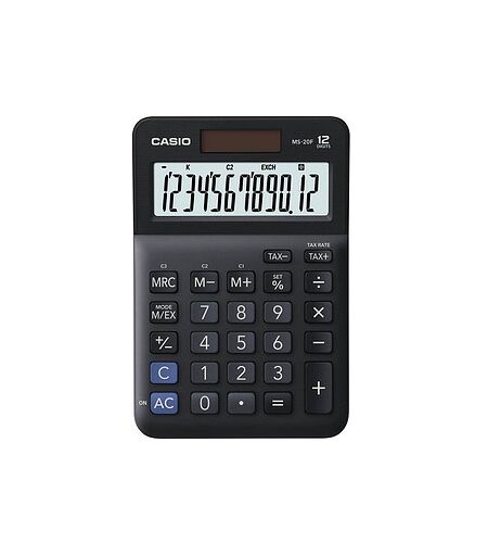 Unverzichtbares Rechentalent – der CASIO MS-20F Tischrechner schwarzWenn Sie einen modernen und einfach zu bedienenden Rechenhelfer für alle Zwecke suchen, dann ist der CASIO MS-20F Tischrechner schwarz genau der Richtige für Sie! Intelligent und vielfältig, ist er mit allen wichtigen Basisfunktionen ausgestattet. Dieses weitere Merkmal besitzt das Modell: Gummifüße.Die Funktionen im ÜberblickDurch Betätigen der Prozenttaste kann man Prozentsätze eines gegebenen Wertes errechnen oder zu einem Wert hinzufügen oder davon subtrahieren. Folgende Funktionen bietet das Gerät darüber hinaus:WährungsumrechnungSteuerberechnungAbschaltautomatikDank der Währungsumrechnung können Sie problemlos Beträge in unterschiedlichen Währungen umrechnen und hierbei den aktuellen Kurs berücksichtigen. Mit der Steuerberechnungsfunktion können Sie schnell die Mehrwertsteuer berechnen und die Differenz zwischen Brutto- und Nettobetrag feststellen. Mit Batterie-/SolarzellenbetriebUnd auch Strom wird gespart. Dank doppelter Stromversorgung (Solar- und Batteriebetrieb) ist das Produkt unabhängig von der jeweiligen Lichtsituation nutzbar. Dank Abschaltautomatik müssen Sie nicht an das Ausschalten denken.Mit Speicher für mehr EffizienzDie Ergebnisse lassen sich auf dem 12-stelligen LCD-Display einfach und leicht ablesen. Das Gerät bietet Ihnen mit seinem 3-Tasten-Speicher eine einfache Möglichkeit, häufig verwendete Werte abzuspeichern und schnelle Berechnungen durchzuführen.Erleichtern Sie Ihren Alltag!Wenn Sie sich für den CASIO MS-20F Tischrechner schwarz entscheiden, erhalten Sie 1 Knopfzelle LR54 zur Lieferung mit dazu. ...