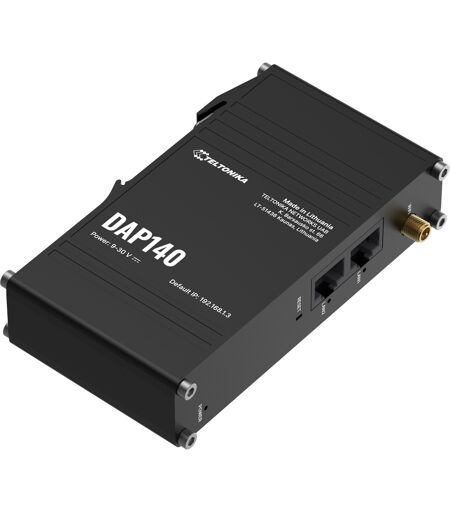 Der Teltonika DAP140 ist ein industrieller Wireless Access Point mit passivem PoE-Eingang, der die Wi-Fi-Abdeckung und -Leistung in industriellen Umgebungen verbessert. Ausgestattet mit Wi-Fi 4 mit Wi-Fi Mesh und Fast Roaming sowie zwei RJ45-Ports und Unterstützung von bis zu 50 gleichzeitigen Verbindungen, ist dieser Wireless Access Point ein wesentlicher Bestandteil für die Aufrechterhaltung einer zuverlässigen WLAN-Verbindung. Eine integrierte DIN-Schienenhalterung, ein 3-poliger Stromanschluss und ein industrietaugliches Aluminiumgehäuse machen den DAP140 zum idealen Access Point für industrielle Anwendungen. ...