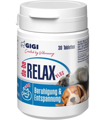 Anwendungsgebiet von GIGI VET da-ba Relax Plus N30GIGI VET da-ba Relax Plus N30 wurde speziell entwickelt, um Hunde und Katzen in belastenden Situationen sanft zu beruhigen.Ob bei Gewitter, Tierarztbesuch, Reisen oder neuen Umgebungen – sensible Tiere reagieren oft mit Stress, Appetitlosigkeit oder Rückzug. Diese Premium-Formel hilft, innere Ausgeglichenheit wiederherzustellen und den Alltag entspannter zu gestalten.Wirkungsvoll durch:Baldrian – unterstützt bei innerer Unruhe und SpannungszuständenMelisse – wirkt beruhigend und fördert eine entspannte GrundstimmungIdeal bei:Trennungsangst & AlleinbleibenGeräuschempfindlichkeit (Feuerwerk, Gewitter)Autofahrten, Tierarztbesuche, UmzügeGenereller innerer UnruheFür Hunde & Katzen aller AltersgruppenTierärztlich entwickeltOhne künstliche BeruhigungsmittelGut verträglich – auch für Langzeitanwendung geeignetSorgen Sie für mehr Gelassenheit – mit GIGI VET da-ba Relax Plus N30.Weil entspannte Tiere gesünder und glücklicher leben.Wirkungsweise von GIGI VET da-ba Relax Plus N30Baldrian – unterstützt bei innerer Unruhe und SpannungszuständenMelisse – wirkt beruhigend und fördert eine entspannte GrundstimmungWirkstoffe / Inhaltsstoffe / ZutatenInhaltsstoffe von GIGI VET da-ba Relax Plus N30:Dextrose (13.2.2.) – 64,3 %Calciumhydrogenorthophosphat (11.3.1) – 15 %Magnesiumstearat (11.2.10) – 1,8 %Hefen, Mineralstoffe, Zucker, Öle und FetteAnalytische Bestandteile:Rohprotein 6 %, Rohfaser 6 %, Rohasche 5 %, Rohöl und -fett 0 %, Ca 3,4 %, P 2,7 %, Mg 0,5 %, Ölsäure 0,1 %.Zusatzstoffe pro kg:Technologische Zusatzstoffe: Mikrokristalline Cellulose (E460) 10 g.Sensorische Zusatzstoffe: Baldrian (Valeriana officinalis L.) Wurzelextrakt (CoE473) 56 g, Extrakt der Blätter der Melissa officinalis L. (2b280-ex) 13 g.GegenanzeigenBei bekannter Überempfindlichkeit gegenüber einen der oben genannten Inhaltsstoffe sollte dieses Produkt nicht angewendet ...