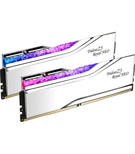 Das F5-6000J2836G16GX2-TR5NS ist ein Kit aus zwei 16-GB-DDR5-6000-Speichermodulen (PC5-48000) aus der Trident Z5 Royal Neo Serie. Die Gesamtkapazität beträgt 32 GB. Die 288-Pin-Unbuffered-DIMMs unterstützen ein Timing von 28-36-36-96 bei 6000 MHz und benötigen eine Spannung von 1,40 Volt. Die Trident Z5 Royal Neo Serie besitzt Hochglanz-Kühler aus Aluminium mit einer oberen Kante aus kristallinem Acrylglas und integrierter RGB-LED-Beleuchtung. AMDs Memory-Profil EXPO wird von diesem Kit unterstützt. ...