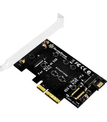 Die Silverstone SST-ECM20 PCIe Adapterkarte eignet sich zur Erweiterung eines Mainboards um zwei M.2 Ports. Sie unterstüzt dabei den simultanen Betrieb einer PCIe-M.2-SSD (M-Key) sowie einer SATA-M.2-SSD (B-Key). Die Silverstone SST-ECM20 ist über ein PCIe-x4-Interface angebunden und unterstützt Geschwindigkeiten von bis zu 32 Gbit/s (6 Gbit/s über SATA). ...