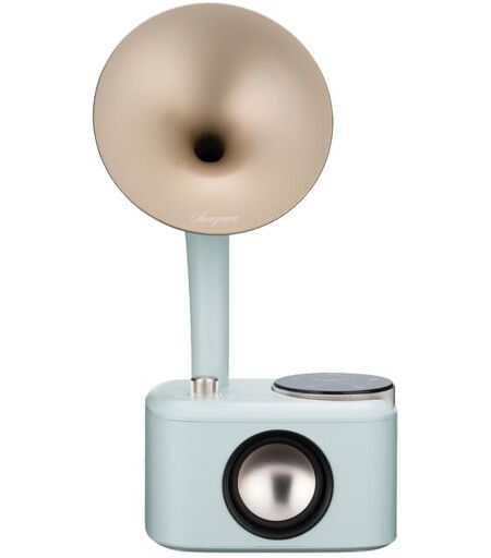 Überrascht mit Retro-Grammophon-Design in hellblau-gold und Soundqualität: das CP-100D von Sangean. Im Inneren steckt ein DAB+ und UKW Radio sowie ein Bluetooth-Empfänger zur Musik-Wiedergabe von Smartphone, Tablet, ... Empfangseigenschaften Tuner für DAB+ / UKW; 20 Senderspeicherplätze (10 UKW, 10 DAB+); Bluetooth Audio Streaming; Bedienung digitaler Touchpad-Controller; Drehknopf für Lautstärkenregelung; einstellbare automatische Abschaltung; Display/Anzeigen LCD-Display; Anzeige der Uhrzeit; Ton-Wiedergabe/Einstellung Mono-Ton über eingebauten Passiv-Lautsprecher; Bass Reflex-Rohr; Musik-Leistung: 2 W; Anschlüsse Aux (IN); Bluetooth-Schnittstelle V5.0; Spannungsversorgung durch eingebauten Akku (2600 mAh); Akku-Laufzeit: max. 20 Std.; Akku-Ladedauer: ca. 5 Std.; LED-Anzeige für Ladestand; USB-C Ladeanschluss (Kabel mitgeliefert); Gehäuse-Eigenschaften Breite: 14.5 cm; Höhe: 25.4 cm; Tiefe: 9.3 cm; Gewicht: 510 g; Lieferung inklusive... externe UKW-Drahtantenne; Farben hellblau-gold; ...