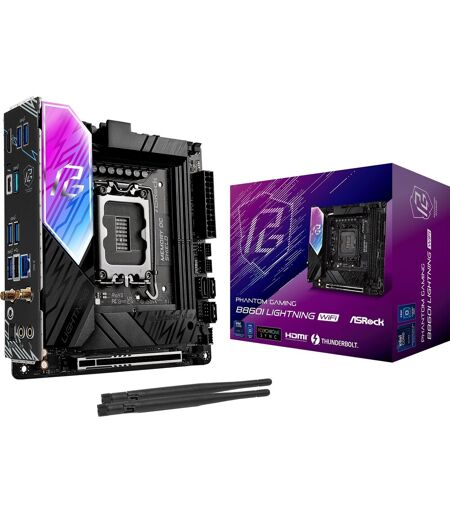 Das ASRock B860I Lightning WiFi basiert auf dem Intel®-B860-Chipsatz und unterstützt Intel®-Prozessoren für den Sockel 1851. Es verfügt über zwei DDR5-Slots für bis zu 64 GB Arbeitsspeicher. Zur weiteren Ausstattung des ASRock B860I Lightning WiFi gehört ein PCIe-5.0-x16-Slot. Außerdem verfügt das ASRock B860I Lightning WiFi über 8-Kanal-Sound, eine 2.5 Gigabit-LAN-Schnittstelle, WiFi 6E, Bluetooth 5.3, zwei SATA3-Anschlüsse, zwei M.2-Anschlüsse und eine Reihe an USB Schnittstellen. ...