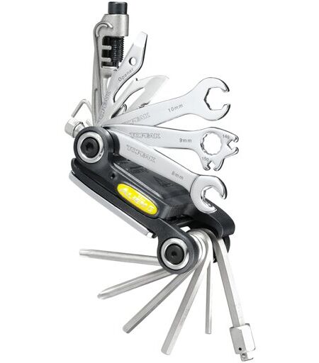 Das preisgekrönte Do-It-All Werkzeug. 31 Funktionen lassen sich aus dem leichtem, zweiteiligen Gehäuse entfalten. Die Vorspannung der Werkzeuge lässt sich dabei individuell einstellen. Inklusive einer Neoprentasche - Das perfekte Werkzeug für Fahrräder!*Kettennieter kompatibel mit Single- und Multi-Speed Ketten bis 12-fach. NICHT kompatibel mit Campagnolo® 11-fach Hollow Pin Ketten.8,6 x 4,3 x 4,1 cmRINGSCHLÜ SSEL: 9 mmMAULSCHLÜ SSEL: 8 / 10 / 15 mmPEDALSCHLÜ SSEL: Mini (für Notreparaturen)Speichenschlüssel: 14G (3,4mm), 15G (3,2 mm)Schraubendreher: #2 Phillips, FlachkopfTORX® -SCHLÜ SSEL: T25INBUS® -SCHLÜ SSEL: 2-L / 2,5 / 3 / 4 / 5 / 6 / 8 / 10 mmWerkzeugvorspannung einstellbarZweiteiliges DesignFach für zwei NietstifteLuftablassdornGrößerer HebelNietstiftbrecherKettenfixierhaken2x ReifenheberFunktionen: 31 ...