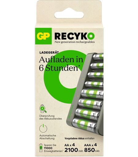 Das 8-Port USB Akkuladegerät E821 ist ein leichtes, tragbares Ladegerät im Taschenformat, das bis zu acht AA- oder AAA-Akkus gleichzeitig auflädt und eine umweltfreundliche, kostengünstige Stromversorgungslösung bietet. Das Ladegerät E821U kann Akkus mit unterschiedlichen Kapazitäten (650 bis 2.600 mAh) und Kombinationen davon (2, 4, 6 oder 8 Stück) über eine USB Stromquelle aufladen. In 6 Stunden lädt das Gerät z.B. vier AA-Akkus mit 2.100 mAh auf. Der Ladefortschritt kann über die LED-Anzeige verfolgt werden. Sie zeigt den Ladestatus an, oder ob versehentlich Einwegbatterien oder schlechte Akkus eingelegt wurden. Neu bei diesem Ladegerät ist die Funktion "Akkustatusüberprüfung". Mit dieser Funktion kann schnell und einfach überprüft werden, ob die Akkus noch ausreichend gefüllt sind oder nachgeladen werden müssen. So vermeidet man unerwartete Situationen mit leeren Akkus, aber auch, die Akkus unnötig aufzuladen. Weitere Sicherheitsdetails sind der automatische Sicherheits-Timer, der nach 12 Stunden den Strom abschaltet und die Vollladungserkennung, die Überladung, Überspannung und Kurzschlüsse sowie eine Beeinträchtigung der Akkulebensdauer verhindert. Vier NiMH-Akkus GP RECYKO AA mit 2.100mAh und vier NiMH-Akkus GP RECYKO AAA mit 850mAh werden mitgeliefert. ...