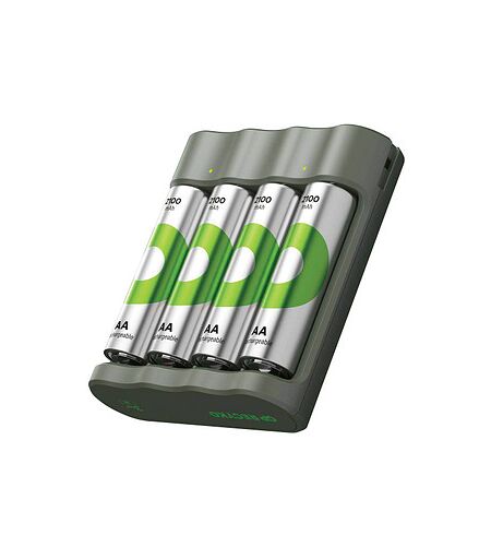 GP USB-Akku-Ladegerät inkl. 4x AA-Akkus à 2.100 mAh – die perfekte LösungAuf das GP B441U + B441D 4-Port USB-Akku-Ladegerät inkl. Akkus ist Verlass. Mit seiner kompakten und tragbaren Bauweise passt es perfekt in jede Umgebung – sei es im Büro, zu Hause oder unterwegs.Zuverlässig laden in nur 3 Std.Bis zu 4 Batterien gleichzeitig, bei gerade mal 3 Std. Ladezeit – das überzeugt! Das GP USB-Akku-Ladegerät ermöglicht Ihnen ein schnelles Wiederaufladen der Batterien. Somit haben Sie immer einsatzbereite Akkus, wann immer Sie diese benötigen. Aufladen statt wegwerfenGanze 4.000 Einwegbatterien sparen – ein Argument das zählt! Ob AA oder AAA, mit diesem Ladegerät ist das Aufladen beider Akku-Typen möglich. Bei dem GP B441U + B441D 4-Port ist jeder Port passend für AA & AAA Akkus. Das spart nicht nur Geld, sondern auch Müll, indem es das Wegwerfen leerer Batterien überflüssig macht. Intelligente Funktionen für maximale LeistungDas Ladegerät verfügt über einen integrierten Sicherheitstimer für einen zuverlässigen Ladevorgang. Es schaltet automatisch ab, sobald die Akkus vollständig geladen sind, erkennt defekte Akkus oder auch den falschen Batterietypen. Und über die LED-Stromanzeige haben Sie den Ladestand jeder einzelnen Akkuzelle stets im Blick. Sie legen Wert auf Qualität und Zuverlässigkeit? Dann bestellen Sie noch heute das USB-Akku-Ladegerät B441U + B441D 4-Port von GP direkt hier bei uns Online-Shop. Die Lieferung erfolgt inklusive 4x AA NimH Akkus, je 2100 mAH, USB Ladekabel, Docking Station. ...