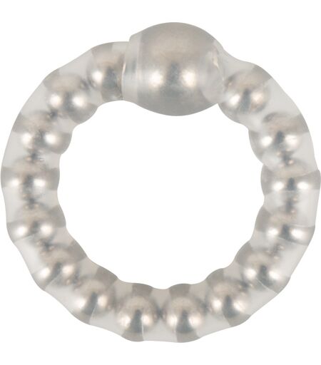 Penisring mit massierenden, stimulierenden Metallkugeln unter der transparenten, silikonähnlichen Hülle. Stramm anliegend hält der Ring das Glied steil hoch für lang anhaltende Sexfreuden. Ø 2,5 cm (dehnbar). ...
