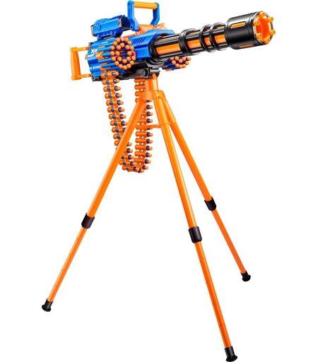 Unglaubliche Action mit den XSHOT Insanity Blastern! Der motorisierte Rage Fire Blaster ist so groß, dass er mit einem Stativ ausgestattet ist. Der automatische Munitionsgürtel lässt sich mit bis zu 40 Darts aufladen. Es können Ziele aus bis zu 27 Metern Entfernung getroffen werden. Der Rage Fire kommt mit einer großen Menge an Zubehör. Die mitgelieferten XSHOT Darts besitzen die Air-Pocket-Technologie für schnellere und genauere Schüsse auf größere Distanz. ...