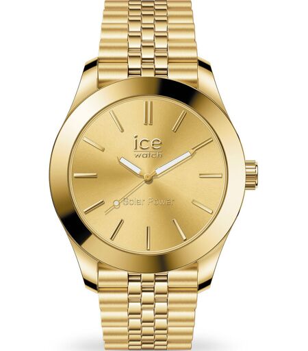 Erleben Sie die zeitlose Eleganz der ICE steel solar power - Gold, die nicht nur ein praktisches Accessoire, sondern auch ein Statement für Stil und Luxus ist. Diese Uhr hebt Ihr Outfit auf ein neues Level und verleiht Ihnen sofort einen Hauch von Glamour. Stellen Sie sich vor, wie Sie mit dieser goldenen Schönheit am Handgelenk selbstbewusst durch den Tag schreiten und bewundernde Blicke auf sich ziehen. Die ICE steel solar überzeugt durch ihre einzigartigen Eigenschaften: das vollständig goldfarbene Gehäuse und Armband strahlen nicht nur Luxus aus, sondern sind auch extrem langlebig. Der innovative Solarantrieb sorgt dafür, dass Sie nie wieder an Batteriewechsel denken müssen – einfach Licht tanken und genießen! Mit einem klaren, zeitlosen Zifferblatt fügt sich diese Uhr harmonisch in jeden Look ein, sei es im Büro oder beim feierlichen Anlass. Dank ihrer robusten Bauweise und der hochwertigen Materialien ist die ICE steel solar nicht nur schön anzusehen, sondern auch äußerst funktional. Ob beim Sport oder beim entspannten Abendessen – sie begleitet Sie zuverlässig in allen Lebenslagen. Durchmesser: 34,5mm Wasserdicht: 10 ATM ...