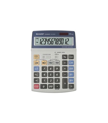 Der SHARP EL-2125C Tischrechner grau/blau – unverzichtbarer ZahlenexperteDer SHARP EL-2125C Tischrechner grau/blau ist ein unverzichtbares Werkzeug für schnelle und genaue Berechnungen in Ihrem Büro oder Geschäft. Platzieren Sie das praktische Gerät einfach an Ihrem Arbeitsplatz, um es immer parat zu haben.Mit SpeicherDie gut lesbare Anzeige erfolgt über ein LCD-Display (12-stellig). Darüber hinaus ist das Display klappbar, weshalb es allen Arbeitssituationen flexibel angepasst werden kann. Dank des 4-Tasten-Speichers können Sie Zahlen für eine spätere Nutzung bequem zwischenspeichern. So bleibt kein Ergebnis offen oder geht verloren.Effiziente StromversorgungDie Nutzung des Geräts ist energieeffizient: Dafür sorgen Solarzellen. Aber auch der Batteriebetrieb ist möglich. Der Artikel verfügt außerdem über eine automatische Abschaltfunktion, dank der Sie nicht unnötig Strom verbrauchen.Vorteil ProzenttasteDurch Drücken der 00-Taste können Sie zwei Nullen hinzufügen. Sie können mit der Prozenttaste Prozentsätze eines Wertes ausrechnen oder Prozentsätze zu einem Wert addieren oder davon abziehen. Das Modell verfügt zudem über diese praktischen Funktionen:WährungsumrechnungSteuerberechnungAbschaltautomatikDank der Währungsumrechnung können Sie bequem Beträge zwischen unterschiedlichen Währungen umrechnen. Dank der Steuerberechnungsfunktion können Sie im Handumdrehen die fällige Steuer für einen gegebenen Betrag berechnen und ausweisen. Erleichtern Sie Ihren Alltag!Damit Sie gleich beginnen können, erhalten Sie die Lieferung des SHARP EL-2125C Tischrechners grau/blau inklusive 1 Knopfzelle LR44. ...