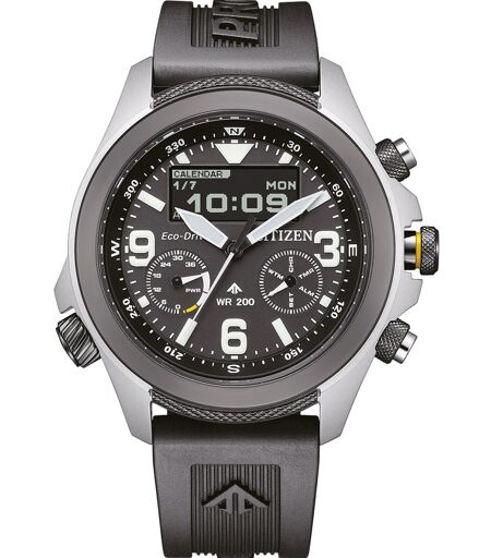 Die Citizen Uhr JV1007-07E ist eine neue Kombinationsuhr, die speziell zum 35-jährigen Jubiläum der Marke PROMASTER entwickelt wurde. Mit dem neu entwickelten Kaliber U822 und dem hochauflösenden Memory-in-Pixel-Display (MIP) bietet diese Uhr eine verbesserte Sichtbarkeit und ermöglicht die Anzeige von mehr Informationen. Zusätzlich können mehrere Alarme für verschiedene Zeiten und Tage eingestellt werden. Feiere dieses besondere Jubiläum mit der Citizen Uhr JV1007-07E! Modell: JV1007-07E Material: Edelstahl Antrieb: Eco-Drive Ziffernblattfarbe: schwarz Glas: Antireflektierendes Saphirglas Wasserdichtigkeit: 20 Bar Schließe: Dornschließe ...