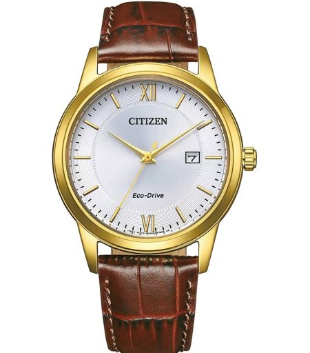 Erleben Sie mit der Citizen Herrenuhr AW1782-11A einen Zeitmesser, der nicht nur die Zeit anzeigt, sondern auch Stil und Eleganz verkörpert. Diese Uhr ist mehr als nur ein Accessoire – sie ist ein Ausdruck Ihrer Persönlichkeit und hebt Ihr Outfit auf ein neues Level. Lassen Sie sich von der zeitlosen Schönheit des goldenen Edelstahlgehäuses verführen, das durch seine polierte Oberfläche zum Blickfang wird und Ihnen das Gefühl von Luxus verleiht. Das runde Gehäuse mit einem Durchmesser von 40 mm passt perfekt an jedes Handgelenk und bietet dank seiner schlanken Bauweise von nur 9 mm Höhe höchsten Tragekomfort. Die feststehende Lünette rundet das harmonische Design ab, während das gehärtete Mineralglas dafür sorgt, dass Kratzer und Beschädigungen der Vergangenheit angehören. Unter dem klaren Glas verbirgt sich ein stilvolles silbernes Zifferblatt, das die Uhr zu einem wahren Meisterwerk macht. Angetrieben von einem zuverlässigen Solar Quarz-Uhrwerk garantiert diese Uhr präzise Zeitmessung und bietet Ihnen alle wichtigen Funktionen: Stunde, Minute, Sekunde und Datum. Egal ob im Büro, beim Dinner oder in der Freizeit – die Citizen AW1782-11A ist der ideale Begleiter für jede Gelegenheit. Vertrauen Sie auf die Qualität und Langlebigkeit, für die Citizen bekannt ist. Mit dieser Uhr investieren Sie in ein Produkt, das Sie lange begleiten wird. Zögern Sie nicht länger! Gönnen Sie sich diese exquisite Uhr und setzen Sie ein Zeichen für Ihren persönlichen Stil. Besuchen Sie uns jetzt und sichern Sie sich Ihre Citizen AW1782-11A! Gehäusebreite: 40mm Gehäusedicke: 9mm Wasserdichte: 3ATM Armband: Leder ...