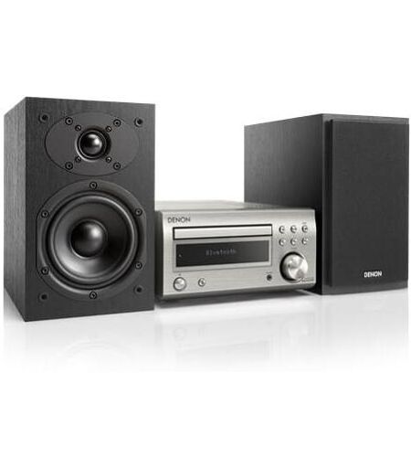 Das kompakte HiFi-System D-M41(DAB) in silber mit Bluetooth, bestehend aus einem CD-Player und perfekt darauf abgestimmten Lautsprechern, bietet eine weiterentwickelte Version des berühmten Klangs der Denon M-Serie. Die hohe Klangqualität, die dreifache Rauschunterdrückung (T.N.R.D.) zur Bewahrung der Signalreinheit, kompakte Bauweise und umfangreiche Wiedergabe-Optionen zeichnen dieses Gerät aus. System bestehend aus: Receiver; CD-Spieler; Stereo/Front-Lautsprecher; Fernbedienung; Leistungs-/Klangeigenschaften WMA kompatibel; Bass-Regler; Höhen-Regler; Tuner-Empfangsteil Tuner für UKW/DAB+; Radio-Data-System (RDS); RDS mit Radio-Text (RT); 40 programmierbare Stationsspeicher; CD-Wiedergabeteil CD-Frontladesystem; CD-Zufallswiedergabe (Random-Play); Wiederholfunktion für eine CD; Bedienung/Anzeigen Display am Gerät; Sleep-Funktion; Weckfunktion; Lautsprecher Regal-Lautsprecher; 2-Wege-Lautsprechersystem; 60 W Nenn-Belastbarkeit; 120 W Musik-Belastbarkeit; Impedanz: 6 Ohm; Frequenzgang-Untergrenze: 45 Hz; Frequenzgang-Obergrenze: 40000 Hz; 1 Mittel-Tieftöner; 1 Hochtöner; Durchmesser Tief-Mitteltöner: 12 cm; Durchmesser Hochtöner: 2.5 cm; Anschlüsse Kopfhörer; 2x Digital-Optisch (IN); Bluetooth-Schnittstelle; 1x Audio (IN); Schraub-Anschlüsse für LS-Kabel; Anschluss für Subwoofer; Leistungsaufnahme Leistungsaufnahme: 70 W; Leistungsaufnahme, Stand-By: 0,3 W; Gehäuse-Eigenschaften Breite, Haupteinheit: 21 cm; Höhe, Haupteinheit: 11.5 cm; Tiefe, Haupteinheit: 30.9 cm; Gewicht, Haupteinheit: 4 kg; Breite, Lautsprecher: 14.5 cm; Höhe, Lautsprecher: 23.8 cm; Tiefe, Lautsprecher: 23.4 cm; Gewicht, Lautsprecher: 4.2 kg; Farben Haupteinheit: silber; Lautsprecher: schwarz; ...