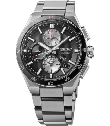 Die Seiko Uhr ist ein hochwertiges Accessoire für alle, die auf der Suche nach Präzision und Stil sind. Mit der Kalibernummer 5 x 83 und der Antriebsart GPS Solar garantiert sie eine ganggenaue Zeitmessung von ±15 Sekunden pro Monat. Die Uhr verfügt über eine beeindruckende Gangreserve von bis zu 6 Monaten bei voller Akkuladung und kann sogar im Energiesparmodus etwa 2 Jahre lang laufen. Mit 14 Lagersteinen ausgestattet, bietet sie zahlreiche Funktionen wie die Verhinderung des Überladens, eine Energiesparfunktion, eine Stoppuhr mit einer Kapazität von bis zu 12 Stunden in 1/20-Sekundenschritten und einen ewigen Kalender korrekt bis zum Jahr 2100. Zusätzlich verfügt die Uhr über eine Weltzeitfunktion für 38 Städte, eine Dual-Time-Funktion, eine Power-Reserve-Anzeige, eine Anzeige der verfügbaren Satelliten, eine Signalstärkeanzeige, eine Sommerzeitfunktion und die Möglichkeit, den Signalempfang zu deaktivieren (Flugmodus). Das Gehäuse aus Titan mit einer Lünette aus Keramik/Titan hat Abmessungen von 13.4mm in der Höhe, 43.3mm im Durchmesser und 49.5mm in der Länge. Das doppelt gewölbte Saphirglas mit Super-Clear-Beschichtung sorgt für Kratzfestigkeit und optimale Ablesbarkeit. Die Zeiger und Indizes sind mit LumiBrite beschichtet, um auch im Dunkeln gut lesbar zu sein. Die Sicherheitsfaltschließe bietet einen bequemen Tragekomfort, während die Wasserdichtigkeit bis zu 10 bar und der magnetische Widerstand zusätzliche Funktionalität bieten. Mit einem Gewicht von nur 117,0 g ist die Uhr leicht und angenehm zu tragen. Antiallergisch dank des Metalls und mit einem verschraubten Gehäuseboden versehen, ist die Seiko Uhr nicht nur ein stilvolles Accessoire, sondern auch ein praktisches Hilfsmittel für den Alltag. Funktionen Funktion zur Verhinderung des Überladens Energiesparfunktion Stoppfunktion (12 Stunden in 1/20-Sekundenschritten) Ewiger Kalender korrekt bis 28. Februar, 2100 Weltzeitfunktion (38 Städte) Dual-Time-Funktion Power-Reserve-Funktion Funktion zur Anzeige der Anzahl von verfügbaren Satelliten Funktion zur Anzeige des Signalempfangs Sommerzeitfunktion Deaktivierung des Signalempfangs (Flugmodus) Automatische Justierung der Zeigerposition ...