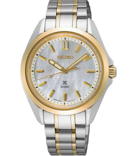 Entdecken Sie die Seiko Uhr – ein Meisterwerk der Zeitmessung, das nicht nur präzise funktioniert, sondern auch Ihr tägliches Leben bereichert. Diese elegante Uhr vereint Funktionalität und Stil und lässt Sie in jeder Situation strahlen. Stellen Sie sich vor, wie Sie mit jedem Blick auf Ihr Handgelenk das Gefühl von Sicherheit und Selbstbewusstsein spüren. Die Seiko Uhr beeindruckt durch ihre einzigartige Kombination aus hochwertigem Edelstahlgehäuse und einem atemberaubenden Perlmuttzifferblatt, das in jedem Licht schimmert. Mit einer Ganggenauigkeit von ±15 Sekunden pro Monat können Sie sich darauf verlassen, dass Sie immer pünktlich sind. Die Sicherheitsfaltschließe sorgt dafür, dass die Uhr sicher am Handgelenk bleibt, während die 20 bar Wasserdichtigkeit sie zum idealen Begleiter für jede Gelegenheit macht – sei es beim Schwimmen im Meer oder bei einem eleganten Abendessen. Mit einem Gehäusedurchmesser von 34 mm und einer Höhe von nur 8,9 mm ist diese Uhr sowohl kompakt als auch auffällig. Das gewölbte Saphirglas schützt das Zifferblatt vor Kratzern und verleiht der Uhr eine edle Note. Die LumiBrite-Technologie sorgt dafür, dass Sie auch bei Dunkelheit stets die Zeit ablesen können. Stellen Sie sich vor, wie Sie diese Uhr bei besonderen Anlässen tragen oder im Alltag kombinieren – sei es mit einem lässigen T-Shirt oder einem schicken Anzug. Vertrauen Sie auf die Qualität von Seiko, einem renommierten Hersteller mit jahrzehntelanger Erfahrung in der Uhrenproduktion. Höhe: 8.9mm Durchmesser: 34.0mm Länge: 40.8mm Glas: Gewölbtes Saphirglas Wasserdicht: 20 bar ...