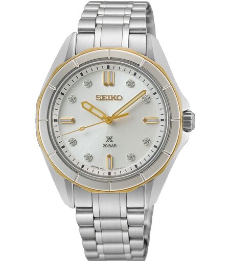 Erleben Sie mit der Seiko Uhr höchste Präzision und zeitlose Eleganz – ein zuverlässiger Begleiter, der Ihren Alltag bereichert und Ihren Stil perfekt unterstreicht. Diese Uhr schenkt Ihnen nicht nur exakte Zeitmessung, sondern auch das Gefühl von Wertigkeit und Beständigkeit, das Sie verdient haben. Spüren Sie die Begeisterung, wenn Sie eine Uhr tragen, die nicht nur durch ihr edles Design überzeugt, sondern auch durch technische Raffinesse begeistert. Die Kombination aus hochwertigem Edelstahlgehäuse und funkelnden Diamanten auf dem Zifferblatt macht jeden Moment zu etwas Besonderem und verleiht Ihnen Selbstbewusstsein und Stil. Besonders hervorzuheben ist das präzise Kaliber 6N01, das mit einer Ganggenauigkeit von ±15 Sekunden pro Monat überzeugt. Das kratzfeste Saphirglas mit entspiegelter Innenseite sorgt für klare Sicht bei jedem Lichtverhältnis. LumiBrite auf Zeigern und Indizes garantiert beste Ablesbarkeit auch in dunklen Umgebungen. Zusätzlich punktet die Uhr mit einem robusten Sicherheitsfaltschließe sowie einem verschraubten Gehäuseboden, der für Wasserdichtigkeit bis 20 bar und magnetischen Widerstand sorgt – perfekt für aktive Träger. Kalibernummer: 6N01 Ganggenauigkeit: ±15 Sekunden pro Monat (Durchschnitt) Batterielebensdauer: ca. 3 Jahre Gehäusematerial: Edelstahl Gehäusegröße: Höhe 8,7 mm, Durchmesser 34,0 mm, Länge 40,8 mm Glas: Saphirglas mit entspiegler Beschichtung innen LumiBrite auf Zeigern und Indizes Sicherheitsfaltschließe Bandanstossbreite: 16 mm Wasserdichtigkeit: 20 bar Magnetischer Widerstand Zifferblatt mit Diamanten Verschraubter Gehäuseboden ...