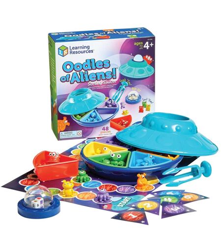 Perfekt für kleine Alien-Fans: Das spannende Spiel von Learning Resources garantiert stundenlangen Spielspaß für Kids ab vier Jahren. 48-tlg. Sortierset mit Raumschiff von Learning Resources mit 6 herausnehmbaren Fächern, 2 Würfeln, 2 Pinzetten, 6 Zahlenkarten und 30 Außerirdischen Raumschiff 23(L) x 13(B) cm groß mehrsprachige Anleitung aus Kunststoff von 4 bis 8 Jahren geeignet Schnappt euch die Pinzetten und helft den lustigen kleinen Außerirdischen, sich über das Spielbrett oder zurück in das richtige Fach des Raumschiffs zu bewegen. Die mehrsprachige Aktivitätsanleitung ist voller Ideen, die das Spielen unterhaltsam und fesselnd machen. Das Sortierset fördert die Farberkennung, das Sortieren, das Zählen und die feinmotorischen Fähigkeiten durch spannende und interaktive Aktivitäten von Kindern im Alter von vier bis acht Jahren. ...