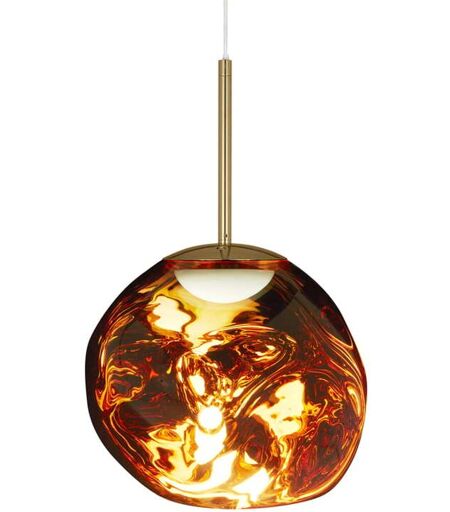 Die Tom Dixon Melt Mini LED Pendelleuchte von Tom Dixon ist eine moderne LED Pendelleuchte mit futuristischen Elementen. Die Tom Dixon Melt Mini LED Pendelleuchte ist eine Mini-Version des Bestsellers Melt Pendant, für welchen die Marke Tom Dixon vor allem bekannt ist. Das Charakteristische an dieser Leuchte ist, natürlich, ihr auffälliger Schirm: Dieser sieht wie eine unregelmäßige Kugel aus und ähnlet sich somit einem Gestein aus dem All. Der Leuchtenschirm der Tom Dixon Melt Mini LED Pendelleuchte ist als eine unregelmäßige Kugel dargestellt. Im eingeschalteten Modus wird er halbtransparent und das Licht wird so verteilt, dass man sofort glaubt, die Kugel würde in Kürze abschmelzen. Das eingebaute LED-Modul trägt noch mehr zu dem gesamten futuristischen Erscheinungsbild bei, da er besonders modern aussieht und seine klare Linien im Licht deutlich ersichtlich werden. Sobald das Licht a... ...