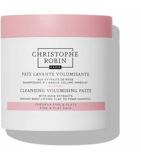 Purify and pamper thin, lacklustre hair with the Christophe Robin Cleansing Volumizing Paste with Pure Rassoul Clay and Rose Extracts – a deep cleansing, shampoo-like treatment with a unique consistency and volume-boosting benefits.The 85% natural-based formula transforms upon application from a paste-like texture into a lightweight foam, with pure Rassoul Mineral Clay, rich in trace-elements, working to absorb dirt, oil and impurities while densifying each follicle for enhanced strength, lift and thickness from the root.Extracts of Baobab Leaf and Centifolia Rose Water impart a soft, supple texture, with antioxidant properties to help combat free radical damage and protect colour vitality. Tresses are left feeling refreshed and rejuvenated, with superior volume and body.Free from parabens, silicone, SLS and colorants. ...