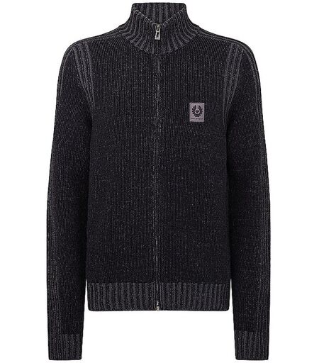 Herren Strickjacke aus extrafeiner Merinowolle Stehkragen Schließt mit durchgehendem Reißverschluss Langarm Zweifarbig plattiert für eine zweifarbige Optik Gestickter, farblich passender Belstaff-Phönix-Aufnäher links auf der Brust RWS-Wolle aus verantwortungsbewusster Quelle Gerade Passform Farbbezeichnung: Black Tornado Grey Material: 100% extrafeine Merinowolle ...