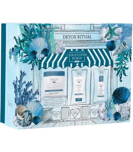 The Christophe Robin Hair Detox Ritual 2024 offers an expertly crafted trio of mineral-infused essentials designed to reinvent your wash day routine. Set Contents: Cleansing Purifying Scrub with Sea Salt 250ml The best-selling scrub features a hybrid formula, combining two potent ingredients to visibly refine even the most sensitive scalps. Combining sea salt for natural exfoliation and a soothing, hydrating agent, the texturised scrub visibly balances and refreshes the scalp, providing optimal hydration for shiny, healthy hair. Purifying Shampoo with Thermal Mud 75ml The ultra-nourishing shampoo is enriched with mineral-rich thermal mud to help minimise oily roots, while softening the strands. Boasting a rich-creamy texture, the detoxifying and cleaning formula helps to protect and refresh from root to tip. Purifying Conditioner Gelée with Sea Minerals 75ml Infused with sea minerals, the lightweight conditioner helps to nourish and hydrate hair. Powered by rich conditioners derived from guar beans and brassica oil, the formula works to detangle as it glides through lengths, encouraging a smooth, silky-looking finish. ...