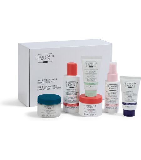 At the heart of this kit is a selection of 6 minis combining practicality and well-being for soft, healthy and shiny hair. Set Contents: Regenerating Shampoo with Prickly Pear Oil 75ml A nourishing, gel-textured shampoo that gently cleanses while revitalising and strengthening hair, leaving it smooth, glossy, and refreshed. Regenerating Mask with Prickly Pear Oil 40ml A luxurious, ultra-nourishing hair mask that deeply conditions, repairs, and smooths hair for a sumptuous, glossy finish. Cleansing Purifying Scrub with Sea Salt 40ml A scalp detoxifying scrub that exfoliates, soothes, and rebalances to leave hair fresh, clean, and healthy-looking. Instant Volumising Leave-In Mist with Rose Water 50ml A weightless volumising mist that lifts roots, adds body, and leaves hair feeling thicker, fuller, and more manageable. Hydrating Leave-In Cream with Aloe Vera 20ml A lightweight cream formulated to deliver an intense dose of daily hydration to dehydrated, frizzy or dull hair. Night Recovery Cream with White Lotus Flower 20ml A night cream formulated to nourish, restore and strengthen fine to medium damaged hair. ...