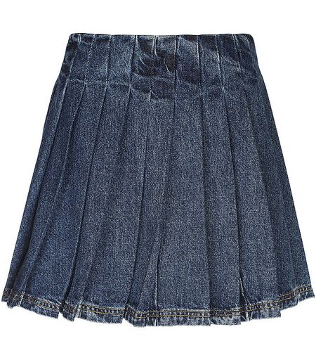 Damen Jeansrock aus kompaktem Denim Mittlere Leibhöhe Schließt mit nahtlosen Reißverschluss seitlich und Haken Gelegte Falten Gewaschene Optik Leicht ausgestellte Form Kurze Länge Farbbezeichnung: Blue Material: 100% Baumwolle ...