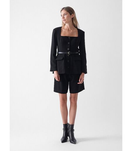 Dieser schwarze Playsuit aus fließendem Crêpe überzeugt mit einem eleganten Finish und klarer Linienführung. Ein Schößchengürtel setzt feminine Akzente und unterstreicht die Silhouette. Besonders wandelbar: Das abnehmbare Ober- und Unterteil lassen sich vielseitig und individuell stylen. Modischer Damen Jumpsuit aus Crepe Gerader Ausschnitt Langarm Schließt mit Knopfleiste in der vorderen Mitte Abnehmbarer Gürtel in der Taille Abnehmbare Shorts mit Reißverschluss an den Seiten Unifarben Farbbezeichnung: Black Material: 100% Polyester ...