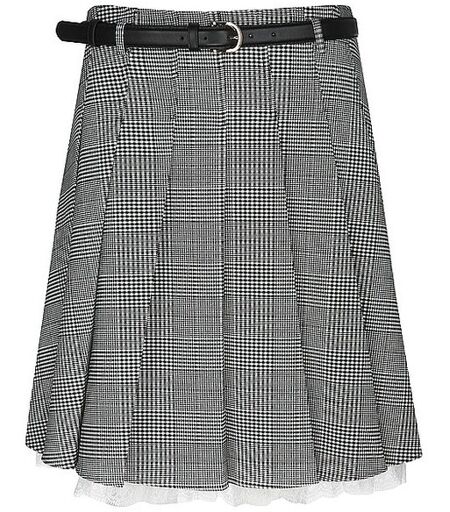 Damen Minirock aus Viskose-Stretch Mittlere Leibhöhe Mit Gürtel Karomuster Falten Saum mit Spitzendetail Länge: Ca: 55 cm Farbbezeichnung: Black and White Material: 66 % Polyester, 31 % Viskose, 3 % Elastan Futter: 100 % Polyester ...
