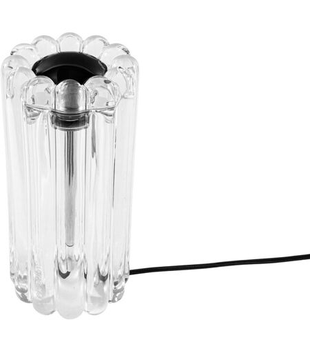 Die Tom Dixon Press LED Tischleuchte ist ein modernes und außergewöhnliches Beleuchtungselement, das durch seine markante Gestaltung aus massivem, transparentem Glas besticht. Die Leuchte gehört zur Press-Serie von Tom Dixon und zeichnet sich durch ihre robusten und klaren Linien aus. Das Glas wird bei hohen Temperaturen geschmolzen und in schweren Eisenformen gepresst, wodurch die typische gerippte Struktur entsteht. Diese Struktur sorgt für eine interessante Lichtbrechung und projiziert bei eingeschaltetem Licht elegante, lineare Muster in den Raum. Die Leuchte ist mit einer integrierten LED-Einheit ausgestattet, die ein warmweißes Licht mit einer Farbtemperatur von 2700K abgibt und somit eine gemütliche Atmosphäre schafft. Sie wird mit drei austauschbaren Metall-Domkappen in den Farben Silber, Gold und Schwarz geliefert, die je nach Wunsch ausgetauscht werden können und für eine indi... ...