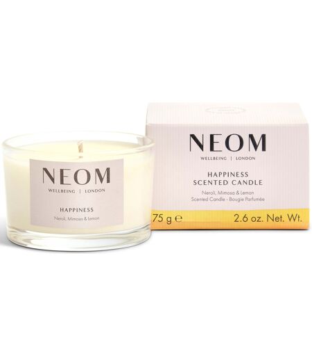 Containing natural vegetable wax and 100% natural fragrance, the NEOM Happiness Scented Travel Candle boasts a refreshing, balancing aroma designed to uplift your mood and fill the air with natural goodness. With burn time of 20 hours, it's formulated with extracts of White Neroli, Mimosa and Lemon with hints of grass for a light, awakening scent. Free from toxins, the Happiness candle is made only from the purest ingredients and is perfect for taking away. ...