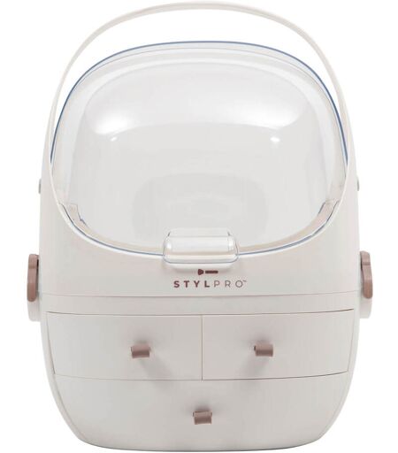 Der StylPro Beauty Pod wurde stilvoll entwickelt, um alle deine Beauty-Essentials aufzubewahren. Er ist die perfekte Möglichkeit, all deine Lieblings-Make-Up- und Hautpflegeprodukte in Ordnung zu halten.Der Beauty Pod ist ideal für Parfüm, Make-Up-Pinsel, Reinigungswasser, Schmuck und vieles mehr. Er bietet ein reisefreundliches, leichtes Design mit einer großen, sichtbaren Spitze für alle deine Lieblingsprodukte. Das multifunktionale Aufbewahrungs-Accessoire verfügt über drei praktische Aufbewahrungskappen und einen Griff, mit dem du deine Artikel auch unterwegs sicher aufbewahren und transportieren kannst. ...