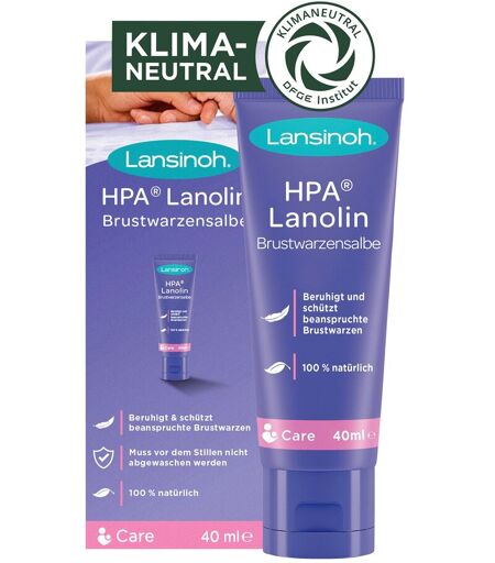 Das Lansinoh® HPA® Lanolin pflegt, beruhigt und schützt empfindliche sowie beanspruchte Brustwarzen in der Stillzeit. Brustwarzencreme Lansinoh® HPA® Lanolin 40 ml zur Pflege der Brustwarzen in der Stillzeit muss vor dem Stillen nicht abgewaschen werden hypoallergen, farb-, geruchs- und geschmacksfrei ohne Konservierungs- und Zusatzstoffe, kein chemisches Bleichen Lansinoh® HPA® Lanolin ist unerreicht in Reinheit und Qualität. Es wird mit einem einzigartigen und besonders schonenden Adsorptionsverfahren hoch aufgereinigt und ist daher besonders sicher. Höchste Qualität und Reinheit sind erforderlich, da Babys beim Stillen regelmäßig kleine Mengen des Lanolins schlucken. Lansinoh® HPA® Lanolin ist klinisch und dermatologisch getestet. Es kann nach jedem Stillen oder bei Bedarf angewendet werden. Als pflegende Salbe ist Lansinoh® HPA® Lanolin vielseitig einsetzbar. Neben der Anwendung in der Stillzeit kann das Wollwachs zum Beispiel auch bei trockenen Lippen, empfindlicher und wunder Haut eingesetzt werden. Inhaltsstoffe 100 % HPA® Lanolin (HPA® = ultrareines Wollwachs medizinischer Güte) ...