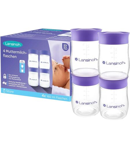 Die Lansinoh Weithals-Flaschen sorgen für eine sichere und zuverlässige Aufbewahrung von Muttermilch und Babybrei. Sie sind auch zum Kühlen, Einfrieren oder Erwärmen geeignet. Füllmenge: 160 ml Lieferumfang: 4er-Pack Lansinoh Weithals-Flaschen, Verschlussplättchen Extras: gut lesbare Skala; zum Kühlen, Einfrieren und Erwärmen geeignet; kompatibel mit Lansinoh-Milchpumpen und NaturalWave-Sauger Material: Flaschen aus Polypropylen (PP), Verschlussplättchen aus Silikon (BPA-frei*) Die Lansinoh Weithals-Flaschen sind aus Polypropylen (PP) gefertigt, dem bevorzugten, lebensmittelechten Material zur Aufbewahrung von Muttermilch und Babybrei.Sie sind kompatibel mit allen Lansinoh-Milchpumpen und können mit dem NaturalWave-Sauger verwendet werden. Die Flaschen haben eine gut lesbare Skala. So kannst Du die Füllmenge auf einen Blick erfassen.Ganz ohne Umfüllen: Die Weithalsflaschen sind zum Kühlen, Einfrieren oder Erwärmen geeignet. Dank weicher Silikon-Verschlussplättchen bleiben sie immer auslaufsicher – auch im Gefrierfach, beim Schütteln oder Transportieren. *Selbstverständlich BPA-frei, wie gesetzlich vorgeschrieben. ...