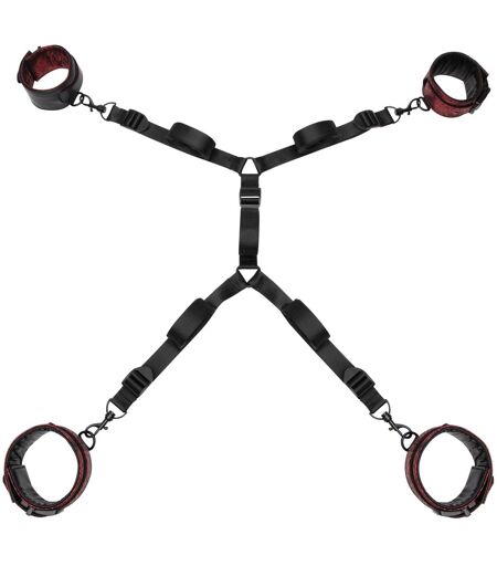 Mit diesem Bettfessel-Set Sweet Anticipation Under Mattress Restraint Set von Fifty Shades of Grey lässt sich jedes Bett in einen Bondage-Playground verwandeln. Das passend verstellbare Gurtkreuz passt unter jede Matratze. An den Gurtenden - jeweils mit D-Ring und Karabiner - werden dann die Fesseln für Hände und Füße eingehakt. Die bequem gepolsterten Hand- und Fußfesselmanschetten sind beidseitig tragbar: Eine Seite in schwarzer Lederoptik, andere Seite mit Satin im schwarz/roten Rosendesign. Jeweils mit Schnallenverschluss im Umfang passend verstellbar. Inklusive Aufbewahrungsbeutel. Gurtkreuz passend für Matratzen bis zu 193 cm x 203 cm. Handfessel je 5,3 cm breit, 25,7 cm lang Fußfessel je 5,3 cm breit, 33 cm lang. PU, Polyamid, ABS. ...