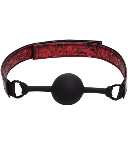 Silikon-Knebel Sweet Anticipation Ball Gag von Fifty Shades of Grey mit beidseitig tragbarem Kopfband. Eine Seite in schwarzer Lederoptik, andere Seite mit Satin im schwarz/roten Rosendesign. Komfortabel gepolstertes Kopfband mit Klettverschluss passend verstellbar. Inklusive Aufbewahrungsbeutel. Gesamtlänge 63 cm, Ball + Band 12 cm lang, Ball-Ø 4,3 cm. PU, Polyamid, Polyester, Metall Knebelball: Silikon. ...