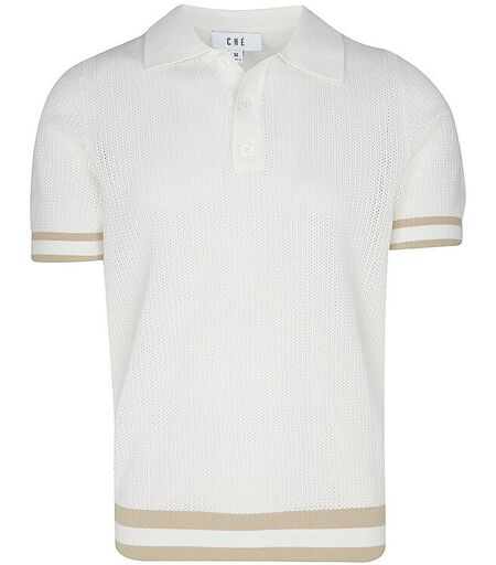 Herren Strickpoloshirt aus reiner Baumwolle Polokragen Kurze Knopfleiste Kurzarm CHÉ-Streifenbündchen an Ärmel und Saum Gerade Passform Farbbezeichnung: White Material: 100% Baumwolle ...