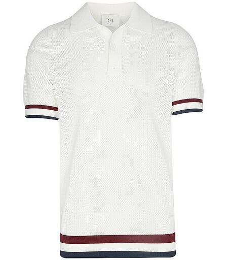 Herren Strick-Poloshirt aus reiner Baumwolle Polokragen mit kurzer Knopfleiste Kurzarm Lochstrickmuster Gerippte Bündchen mit Streifenmuster Lockere Passform Farbbezeichnung: White Material: 100% Baumwolle ...