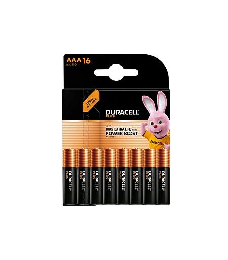 16 DURACELL Batterien PLUS Micro AAA 1,5 V – neuer Batterienvorrat für ununterbrochene EnergieDie Energieversorgung durch die 16 DURACELL Batterien PLUS Micro AAA 1,5 V gewährleistet den einwandfreien Betrieb Ihrer täglichen Begleiter. Ihre Ausdauer und gleichmäßige Energiebereitstellung machen sie zur perfekten Lösung für den Dauerbetrieb.Informationen, auf die es ankommtZu folgenden Batterietypen gehören die Energiespeicher aus Alkali-Mangan: Micro AAA, LR 3, LR 03, MN2400, HR3, HR03 und FR3. Die Zahlen- und Buchstabenkombinationen geben Aufschluss über die Zusammensetzung und Größe der Batterie. Für Geräte des täglichen Bedarfs ist das Produkt besonders geeignet.Die technischen SpezifikationenSie sollten darauf achten, dass die Spannung mit Ihrem gewünschten Gerät kompatibel ist. Dieses Exemplar weist eine Spannung von 1,5 V (Volt) auf.Rüsten Sie sich mit langlebigen Batterien aus und erleben Sie durchgehende Leistung!Wussten Sie, dass es den DURACELL-Hasen schon seit 1973 gibt? Das spricht für fundiertes Wissen und auch umfangreiche Erfahrung auf dem Gebiet der mobilen Energiequellen. Profitieren Sie von der Kompetenz und bestellen Sie die 16 DURACELL Batterien PLUS Micro AAA 1,5 V gleich hier im Online-Shop. ...