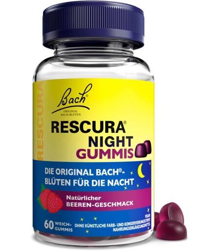 Keine Lust mehr auf Schlaflosigkeit? Eine erholsame Nacht ist wichtig, um morgens frisch in den Tag zu starten. Deshalb gilt: Hören Sie auf zu grübeln, greifen Sie zu Bach RESCURA® NIGHT Gummis mit leckerem Beeren-Geschmac ...