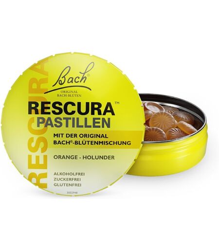 Bitte achten Sie auf eine abwechslungsreiche und ausgewogene Ernährung und gesunde Lebensweise.Bach Original RESCURA® Pastillen Orange-HolunderOriginal RESCURA™ Pastillen enthalten die Original Bach™-Blütenmischung RESCURA™. Sie eignen sich besonders für Kinder und sind ideal für unterwegs. Wohltuender Genuss in vielen anspruchsvollen Alltagssituationen, wie z.B. in der Schule. Original RESCURA™ Pastillen gibt es in den fruchtigen Geschmacksrichtungen Schwarze Johannisbeere, Orange-Holunder, Cranberry und Zitrone. Alle Sorten sind alkohol- und zuckerfrei.RESCURA™ - Die Original Bach™-BlütenmischungDer Engländer Edward Bach konzipierte die bekannte Original RESCURA®-Mischung aus fünf Original Bach®-Blütenessenzen in den 30er Jahren des letzten Jahrhunderts, die heute von Verbrauchern in über 45 Ländern verwendet wird. Die Original Bach™-BlütenIn den 1930er Jahren definierte der Engländer Edward Bach 38 grundlegende Gefühlszustände und entwickelte damit korrespondierende Blütenessenzen. Diese sind als die Original Bach®-Blüten bekannt. Zur Herstellung verwendete er die Blüten wild wachsender Pflanzen und Bäume sowie ein Felswasser. Die Original Bach®-Blüten können uns wohltuend im täglichen Leben unterstützen.Sie können die Original Bach®-Blüten einzeln verwenden oder sich eine Bach®-Blütenmischung zusammenstellen, die auf Ihre jeweilige Situation zugeschnitten ist.Neben den Original Bach-Blütenessenzen® konzipierte Edward Bach die bekannte Original RESCURA®-Mischung, eine Kombination aus fünf Original Bach-Blütenessenzen®. Edward Bach (1886–1936) war ein renommierter Forscher. Seine letzten Lebensjahre verbrachte er in einem kleinen Haus in der Grafschaft Oxfordshire. Dieses Haus ist heute als das Bach Centre bekannt. Noch heute werden die meisten Blüten und Pflanzen an den original Fundstellen im Garten des Bach Centres gesammelt, wie schon in den 30er Jahren des vorigen Jahrhunderts von Edward Bach. Die Herstellung der Original Bach®-Blüten Produkte folgt bis heute strikt den original Anweisungen von Edward Bach.Zutaten:Süssungsmittel (Sorbit, Maltit, Isomalt, Xylit), Geliermittel(Gummi Arabicum), natürliche Aromen (Holunderblüte, Orange), Überzugsmittel (Palmkernöl, Bienenwachs), Bach-Blütenessenzen RESCURA™ (Helianthemumnummularium, Clematis vitalba, Impatiens glandulifera, Prunus cerasifera, Ornithogalum umbellatum), Weizenmehl.Kann bei übermässigem Verzehr abführend wirken. Nährwertangaben:Durschnittliche Nährwertepro 100 g Brennwert863 kj (206 kcal)Fett ...