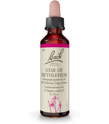 Bitte achten Sie auf eine abwechslungsreiche und ausgewogene Ernährung und gesunde Lebensweise.Gefühlsbeschreibung:Wenn Sie sich nach einem plötzlichen Ereignis, wie z.B. nach einer persönlichen oder beruflichen Niederlage, betrübt fühlen, ist STAR OF BETHLEHEM gut für Sie geeignet.Die Original Bach®-Blüten-Einzelessenzen im traditionellen 20ml Fläschchen. Alkoholgehalt 27% volDie Original Bach®-BlütenIn den 1930er Jahren definierte der Engländer Edward Bach 38 grundlegende Gefühlszustände und entwickelte damit korrespondierende Blütenessenzen. Diese sind als die Original Bach®-Blüten bekannt. Zur Herstellung verwendete er die Blüten wild wachsender Pflanzen und Bäume sowie ein Felswasser.Die Original Bach®-Blüten können uns dabei unterstützen, den emotionalen Herausforderungen des täglichen Lebens zu begegnen. Sie können die Original Bach®-Blüten einzeln verwenden oder sich eine Bach®-Blütenmischung zusammenstellen, die auf Ihre jeweilige Gefühlssituation zugeschnitten ist.RESCUE® - Die Original Bach®-BlütenmischungDer Engländer Edward Bach konzipierte die bekannte Original RESCUE®-Mischung aus fünf Original Bach®-Blütenessenzen in den 30er Jahren des letzten Jahrhunderts.Original RESCUE® ist heute in unterschiedlichen Varianten wie z.B. als Tropfen in der traditionellen Pipettenflasche oder als fruchtige Pastillen erhältlich und wird von Verbrauchern in über 45 Ländern verwendet.Kombiniert mit der Original Bach®-Blüte White Chestnut auch erhältlich als RESCUE NIGHT® - die Original Bach®-Blüten für die Nacht! Zusammensetzung pro 100 mlEnergie 627 kJ / 151 kcalFettdavon gesättigte Fettsäuren0 g0 gKohlenhydratedavon Zuckerdavon Polyole0,5 g0,5 g0 gEiweiß0 gSalz0 gVerzehrempfehlung:2 Tropfen in ein Glas Wasser geben und schluckweise trinken.Oder 2 Tropfen in ein Fläschchen mit 30ml stillem Mineralwasser geben und mehrmals täglich 4 Tropfen davon nehmen.Hinweis:Die angegebene empfohlene Tagesmenge darf nicht überschritten werden.Aufbewahrung: Kühl (6-25 °C) und lichtgeschützt lagern. Außerhalb der Reichweite von Kindern aufbewahren.Nettofüllmenge: 20 ml Herstellerdaten:Nelsons GmbHHeegbarg 2D-22391 Hamburg ...