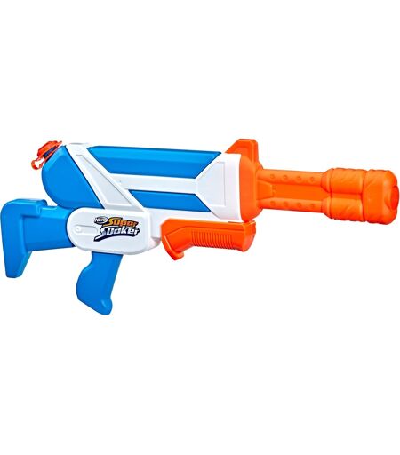 Der Nerf Super Soaker Twister Wasserblaster lädt die Fans ein, 2 sich kreuzende Wasserstrahlen abzufeuern. Dieser Super Soaker Blaster sorgt für jede Menge Action bei Outdoor Wasserschlachten. Wenn der Griff gepumpt wird, rotiert eine Trommel vorne am Lauf und sorgt für eine doppelte Wasser-Attacke, die die Mitspieler in den Schatten stellt. Der Twister Wasserblaster bereichert die Wasserschlachten mit seinen sich kreuzenden Wasserstrahlen. Er kann einfach gefüllt und abgefeuert werden. Der Deckel wird geöffnet, der Tank gefüllt, der Deckel geschlossen und der Griff vor- und zurückbewegt. Der Tank fasst bis zu 1094 ml. Die Nerf Super Soaker Marke sorgt seit 1989 für Wasser-Action und bietet nach wie vor jede Menge nassen Spaß. ...