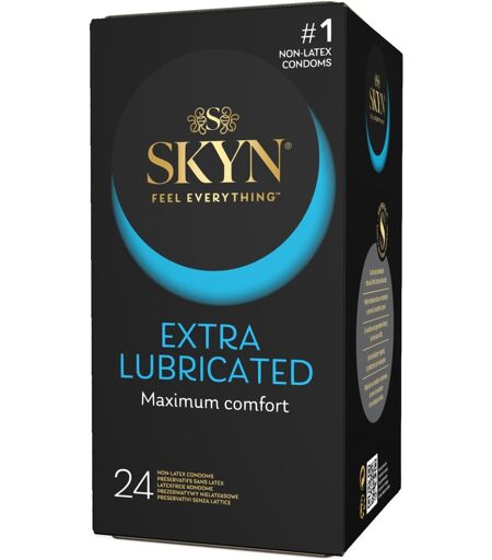 Transparente, extra dünne Kondome Extra Lubricated von SKYN mit 40% mehr Gleitbeschichtung auf Silikonbasis für sanfte sinnliche Erlebnisse mit Komfort. Aus Sensoprene (Poylisopren): Seidig weich und gefühlsecht sowie latexfrei und geruchsneutral – ideal bei Latexallergie und -empfindlichkeit. Mit Reservoir. Vegan. Nennbreite 53 mm. 24 Stück. ...