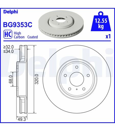 Bremsscheibe DELPHI BG9353C vorne, belüftet, hochkarbonisiert, 1 Stück