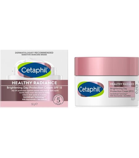 Die Healthy Radiance Day Cream SPF15 von Cetaphil ist selbst für empfindlichste Haut geeignet. Sie versorgt trockene, glanzlose Haut mit Feuchtigkeit und bringt sie zum Strahlen.Die Feuchtigkeitspflege ist mit LSF 15 und der GentleBright-Technologie angereichert, die vor UV-Strahlen schützt und gleichzeitig das Erscheinungsbild eines unebenmäßigen Hauttons verbessert. Die Technologie kombiniert Niacinamid und natürlichen Meerespolster-Extrakt, um das Auftreten von dunklen Flecken zu minimieren. Die Creme wird als Teil deiner morgendlichen Routine aufgetragen und sorgt für eine verfeinerte und strahlend aussehende Haut. ...
