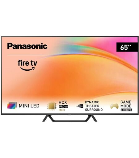 Die W95B-Serie vereint die Panasonic Flagships der Mini LED 4K Fernseher. Mini-LEDs ermöglichen eine noch feinere Abstufung zwischen den einzelnen Bildschirmbereichen. Intelligent gesteuert vom HCX PRO AI MK II Processor, begeistert ein präziseres Bild mit hoher Helligkeit und hervorragendem Kontrast. Das Premium-Heimkino-Vergnügen wird betont durch das kraftvolle Dynamic Theater Surround Soundsystem. Game Mode Extreme und HDMI 2.1-Unterstützung für ruckelfreie Spielerlebnisse sowie Apps und Streaming-Portale über das Fire TV: Diese Fernseher sind ein Statement für Mini-LEDs und maxi Entertainment Bild-Eigenschaften164 cm Bilddiagonale; 65 Zoll Bilddiagonale; 3840 Pixel, horizont.; 2160 Pixel, vertikal; Dolby Vision IQ; HDR 10+ Adaptive; 120 Hz Technik; Spiele-Schaltung; automatische Raumlichtanpassung; Mini-LED-Hintergrundbeleuchtung; local dimming; Multi-PiP; Elektronik-EigenschaftenUltra HD; HDCP 2.3 kompatibel; Auto Low Latency Mode (ALLM); variable Bildwiederholfrequenz (VRR); FreeSync Premium; Sprachsteuerung; Bildschirmanzeigen (OSD); mehrsprachiges Menü; elek. menügest. TV-Programmführung (EPG); Datenverbindung zwischen Video und TV; Idealwert-Funktion Bild/Ton; USB-Aufnahmefunktion; Medienwiedergabe über USB; Netzwerkfähig; Smart TV AusstattungNetflix; Amazon Alexa kompatibel; HbbTV; Online Apps erhältlich; Online Videodienste abrufbar; steuerbar über Smartphone/Tablet; TV-Signal-Streaming; Smartp.-/Tabl. Inhalte kabellos streamen; Dolby-ProLogic-DekoderDolby Atmos; Ton-EigenschaftenBreitband-Lautsprecher; integrierter Bass/Subwoofer; Musikleistung gesamt: 30 W; Musikleistung pro Kanal: 15 W; Musikleistung vom Zusatz-Bass: 20 W; EmpfangseigenschaftenUHDTV-Empfang; DVB-T2 Twin-Tuner; DVB-S2 Twin-Tuner; DVB-C Twin-Tuner; SAT>IP; analoger Kabelempfang; AnschlüsseKopfhörer-Anschluss; Digital-Optisch (OUT), Audio; Common-Interface (CI+); 1 x Common-Interface (CI+); HDMI-Schnittstelle 2.1; 4 x HDMI-Schnittstelle (IN); eARC (Enhanced Audio Return Channel); USB-Schnittstellen: 2; USB 3.0 Schnittstellen: 1; WLAN integriert; Bluetooth-Schnittstelle; Ethernet LAN; LeistungsaufnahmeAngabe gem. EU-Verordnung 2019/2013; Energieeffizienzklasse F; Spektrum [A bis G]; Energieeffizienzklasse HDR-Wiedergabe G; min. Netzspannung: 220 V; max. Netzspannung: 240 V; Leistungsaufnahme, Stand-By: 0,5 W; Leistungsaufnahme, Netz-Aus: 0 W; 102 kWh/1000h Energieverbrauch; 250 kWh/1000h Energieverbr. HDR-Wiedergabe; Gehäuse-EigenschaftenBreite: 144,6 cm; Höhe: 90,3 cm; Tiefe: 32,3 cm; Gewicht: 20 kg; Breite ohne Standfuß: 144,6 cm; Höhe ohne Standfuß: 83,2 cm; Tiefe ohne Standfuß: 32,3 cm; Gewicht ohne Standfuß: 19 kg; Breite, Standfuß: 55,1 cm; Tiefe, Standfuß: 32,3 cm; Wandmontage möglich; VESA kompatibel; Befestigungslöcher (H): 400 mm; Befestigungslöcher (V): 300 mm; Tisch- und Wandgerät; VerpackungsangabenBreite mit Verpackung: 160 cm; Höhe mit Verpackung: 100 cm; Tiefe mit Verpackung: 14,4 cm; Gewicht mit Verpackung: 27 kg; Farbenschwarz; ...
