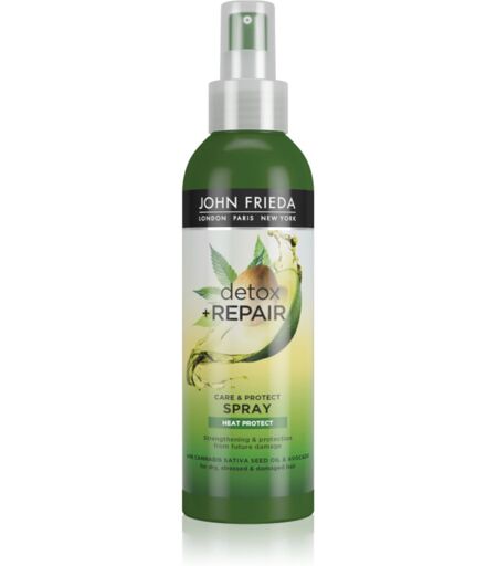John Frieda Detox & Repair, 200 ml, Hitzeschutz für das Haar für Damen, Beim Föhnen, Glätten oder Locken, insbesondere bei wiederholter und häufiger Anwendung, wird das Haar beansprucht, wodurch die Haarstruktur deutlich geschädigt werden kann. Das Hitzestyling-Produkt John Frieda Detox & Repair hilft, dies zu verhindern. Es bildet einen Schutzfilm auf dem Haar, der bei der Verwendung von Stylinggeräten wirksam gegen Hitzeschäden hilft. Die enthaltenen Pflegestoffe verleihen dem Haar außerdem Kraft und erhöhen seine Widerstandskraft gegen schädliche äußere Einflüsse. Eigenschaften: stellt einen wirksamen Schutz beim Hitzestyling dar glättet die Haarfasern wirkt gegen Überbeanspruchung des Haars Anwendung: Sprühen Sie eine angemessene Menge vor dem Föhnen, Glätten oder Wickeln auf das Haar. Auf die Haarlänge und die Spitzes des gewaschenen Haars auftragen und durchkämmen, nicht ausspülen. ...