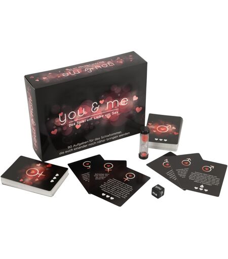 Das aufregende Pärchenspiel you & me mit 90 innovativen erotischen Ideen, sexy Anregungen und abenteuerlichen Aktivitäten. Bei diesem raffinierten Spiel ist das Mitmachen genauso aufregend und stimulierend wie das Gewinnen! Inhalt: 90 Aufgabenkarten plus 8 Sonderkarten sowie 2 Joker, 1 Würfel, 1 Sanduhr. Deutsche Version. ...